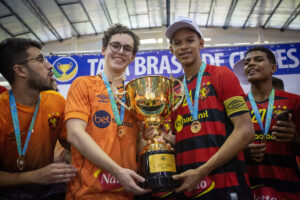Os títulos, por sua vez, funcionam como marcos de uma trajetória construída em etapas. Em 2022, nas quadras, Dedé foi campeão da Taça Brasil sub-16 pelo futsal do Sport – como capitão – em uma campanha que também contou com Pedro Lima. Uma conquista nacional que reforçou, na prática, a ideia de competir para vencer desde cedo.