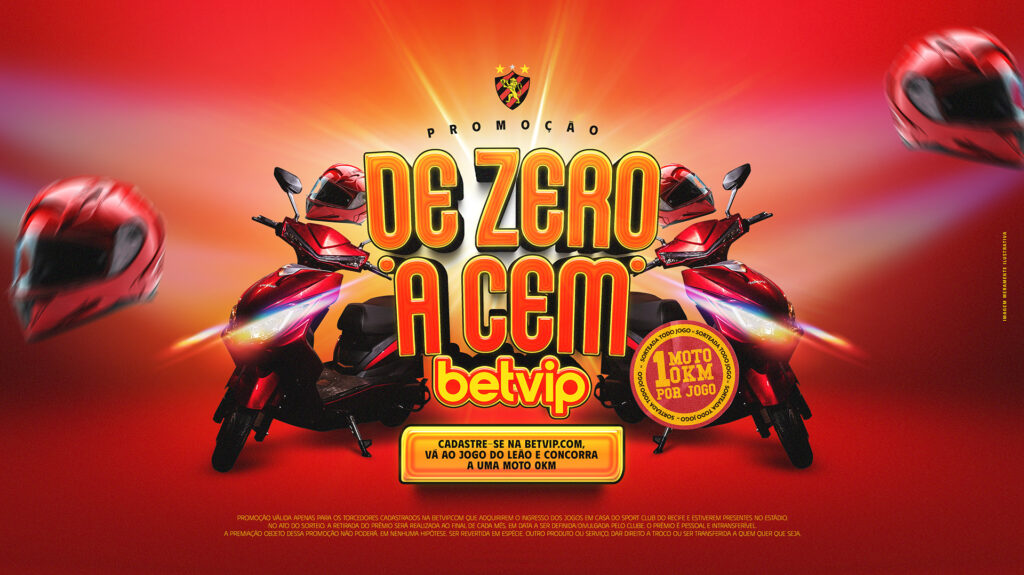 O torcedor do Sport tem mais um ótimo motivo para estar presentes aos jogos do Leão na atual temporada. Em parceria com a Betvip, o Rubro-negro vai sortear uma moto 0km em todos os jogos do Leão da Ilha como mandante. A promoção já começa nesse sábado (17), na partida contra o Porto, válida pelo Campeonato Pernambucano.