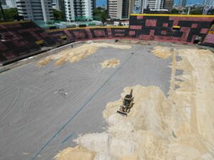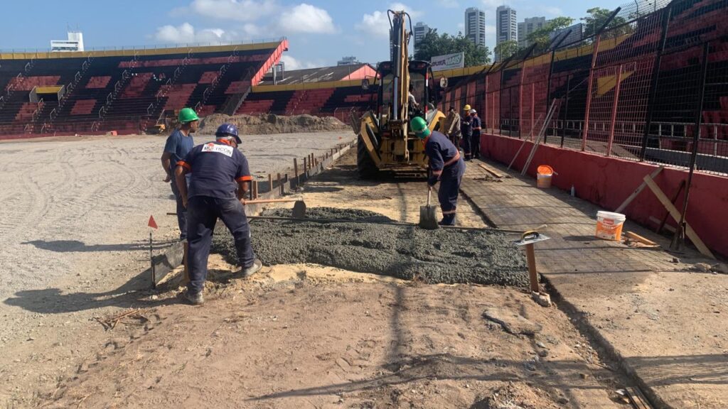Em um segundo momento da obra, foi executado a colocação do colchão drenante, que é distribuição de 15cm de brita por toda área. “A partir dessa etapa, colocamos um novo sistema moderno de irrigação.  Estamos numa fase muito importante da obra. A equipe toda está de parabéns, pois estamos executando todo o trabalho de forma intensa e cuidadosa para deixar a Ilha do Retiro em perfeita ordem”, declarou.