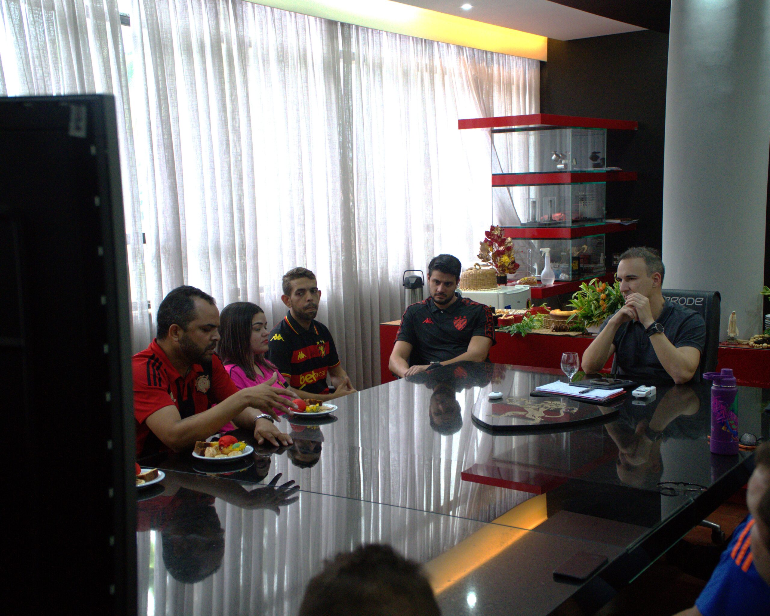 O Sport Club do Recife realizou mais um Bate-Papo com a Gestão com oito sócios rubro-negros, que foram sorteados através do Ilha de Vantagens do Leão. O encontro aconteceu na tarde desta quinta-feira (30), na Sala da Presidência do Clube.